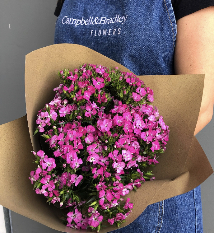 A sea of tiny pretty pink flowers that makes for a stunning posy and a great way to let someone know you’re thinking of them.