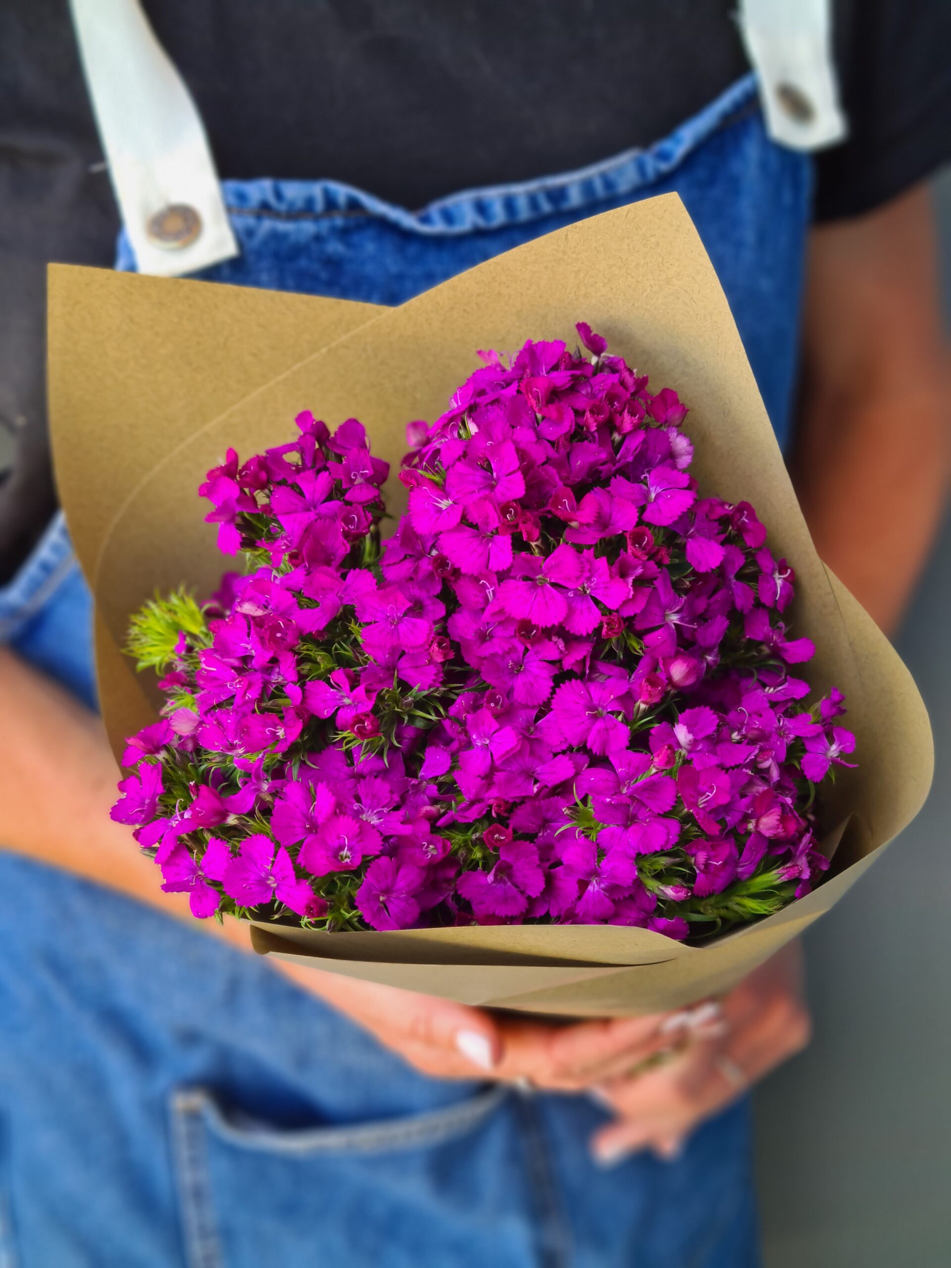 A sea of tiny pretty pink flowers that makes for a stunning posy and a great way to let someone know you’re thinking of them.